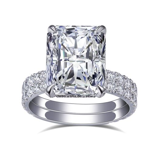 Princess Cut Diamond Engagement Ring Set with Pave Band Bridal Stackable Style