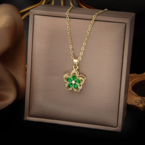 Rotating Four Leaf Clover Necklace for Women Light Luxury Green Zircon Flower Pendant Dainty Clavicle Chain with Micro Paved Cubic Zirconia Trendy Minimalist Jewelry