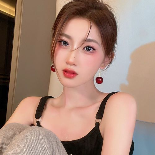 High-End Cherry Earrings for Women - Long Dangle Acrylic Cherry Drops, Cute Fruit Ear Jewelry with Girly Charm